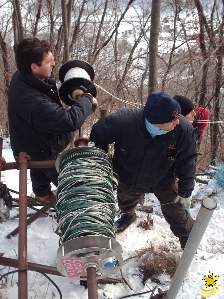 Trasporto merci in vetta eseguito con 2 carri trattori, 2 verricelli, 3 teleferiche